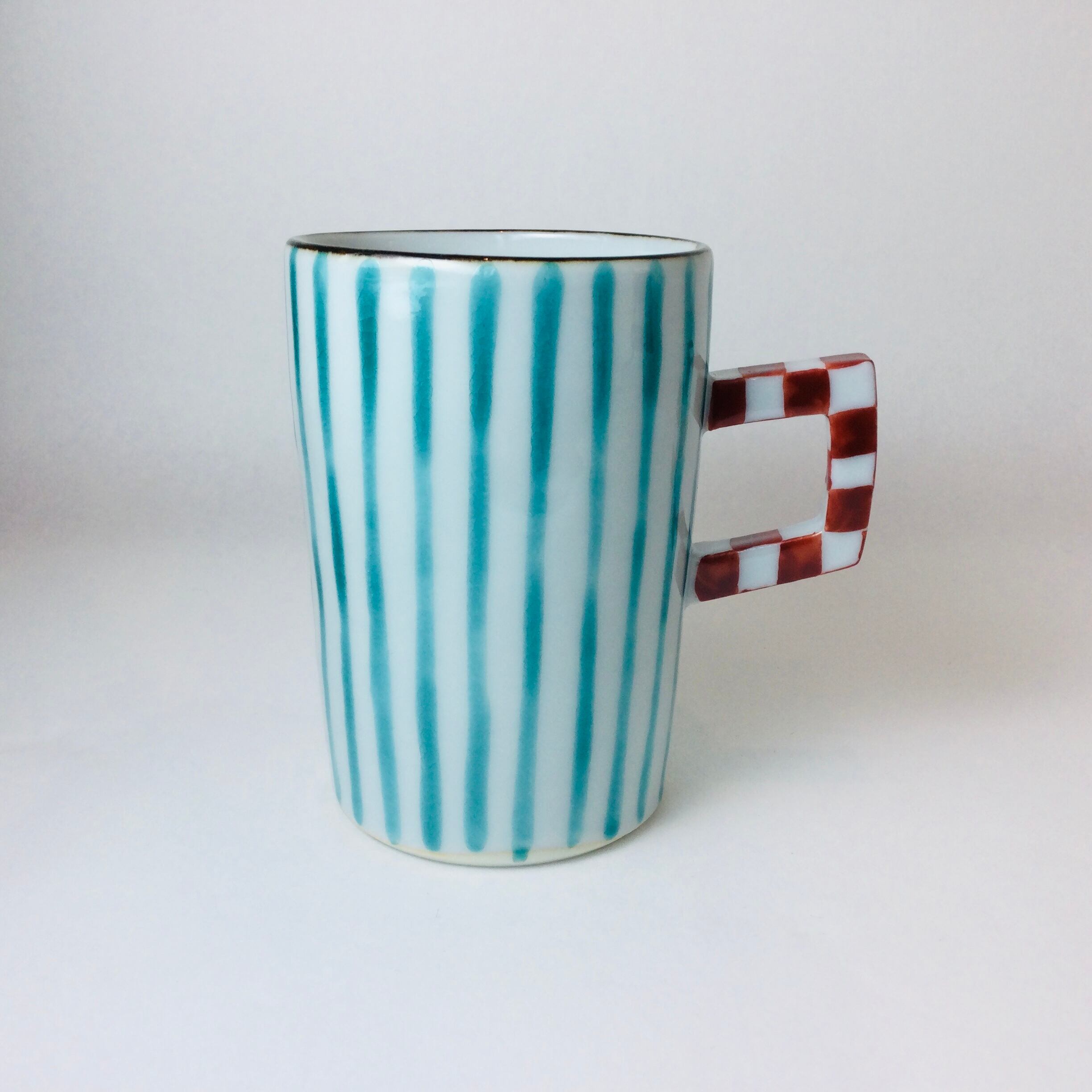 ■人気若手九谷焼作家赤地径(あかじけい)さんの九谷焼細マグカップ、爽やかなストライプです。入荷するとあっという間に売れてしまう、人気作品です。コーヒーや紅茶にぴったり。湯呑みとして日常使いにおすすめです。飾っておくだけでも絵になるモダンなデザインです。毎日のお洒落なコーヒータイムのおともに是非いかがですか?
