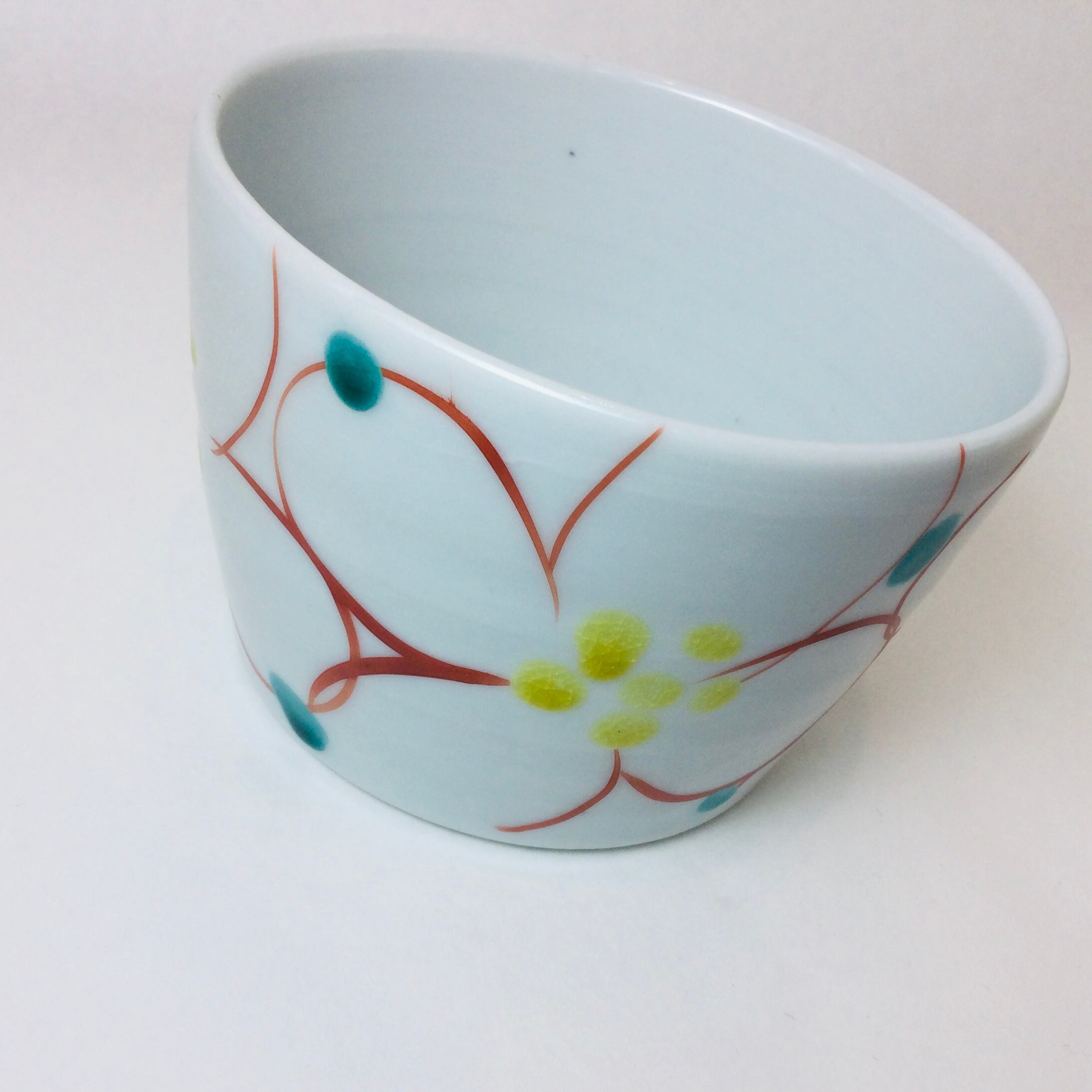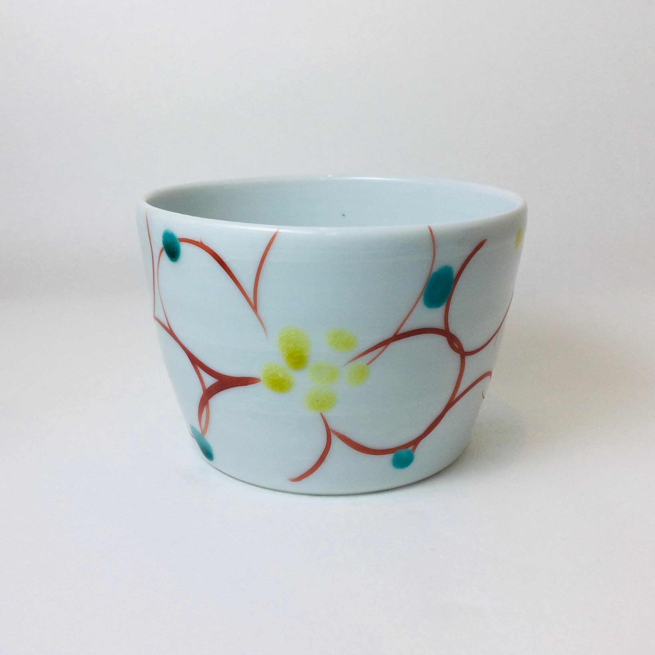 ■人気若手九谷焼作家、赤地径(あかじけい)さんの手作り九谷焼そば猪口です。そば猪口以外にも小鉢として等ご利用下さい。石川県で人気の梅模様です。