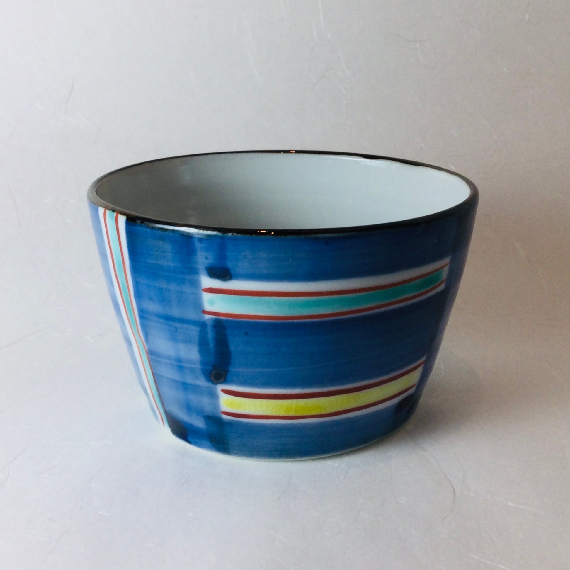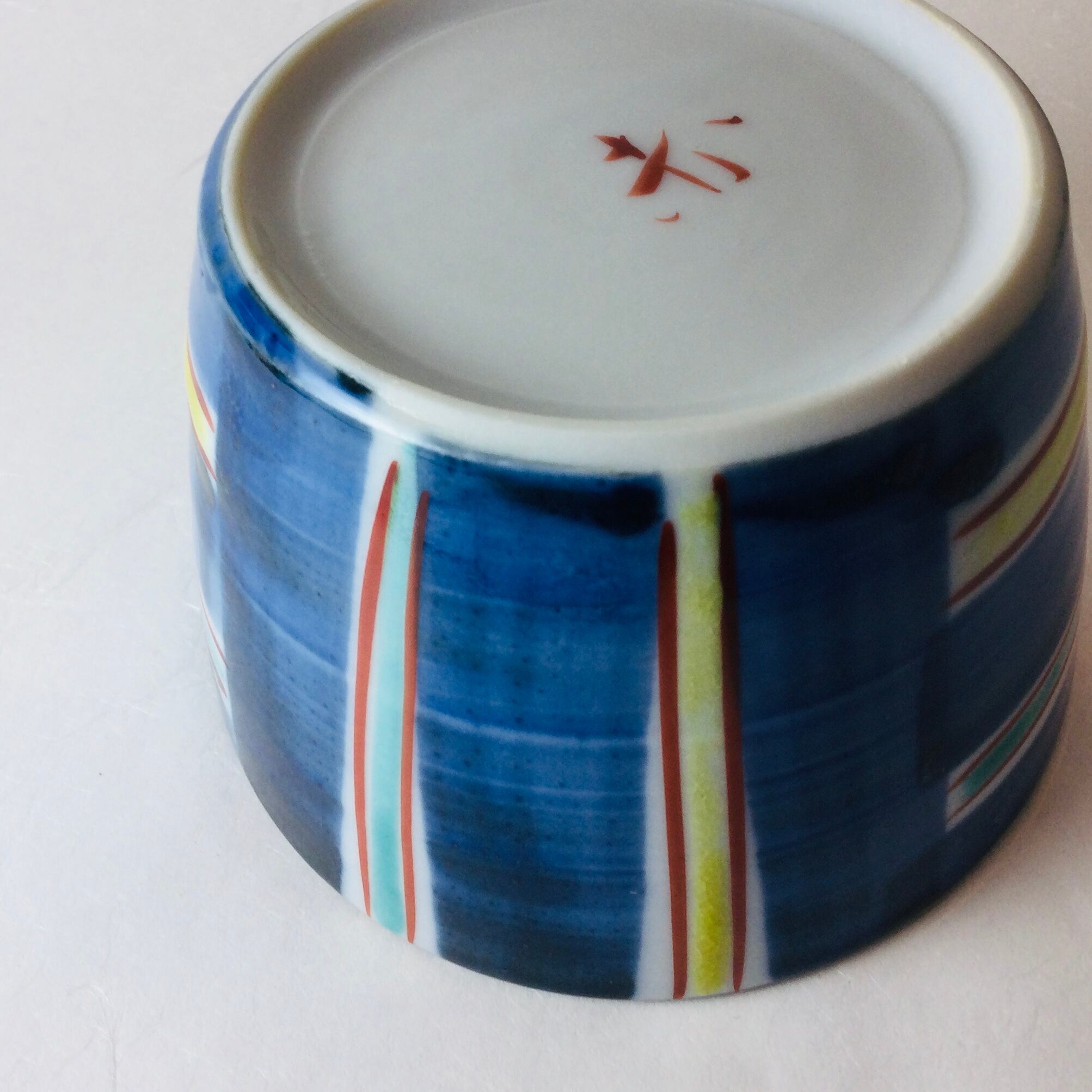 ■人気若手九谷焼作家、赤地径(あかじけい)さんの手作り九谷焼そば猪口です。そば猪口以外にも小鉢として等ご自由にお使い下さい。赤地さん特有の紺色とモダンなデザインがお洒落です。
